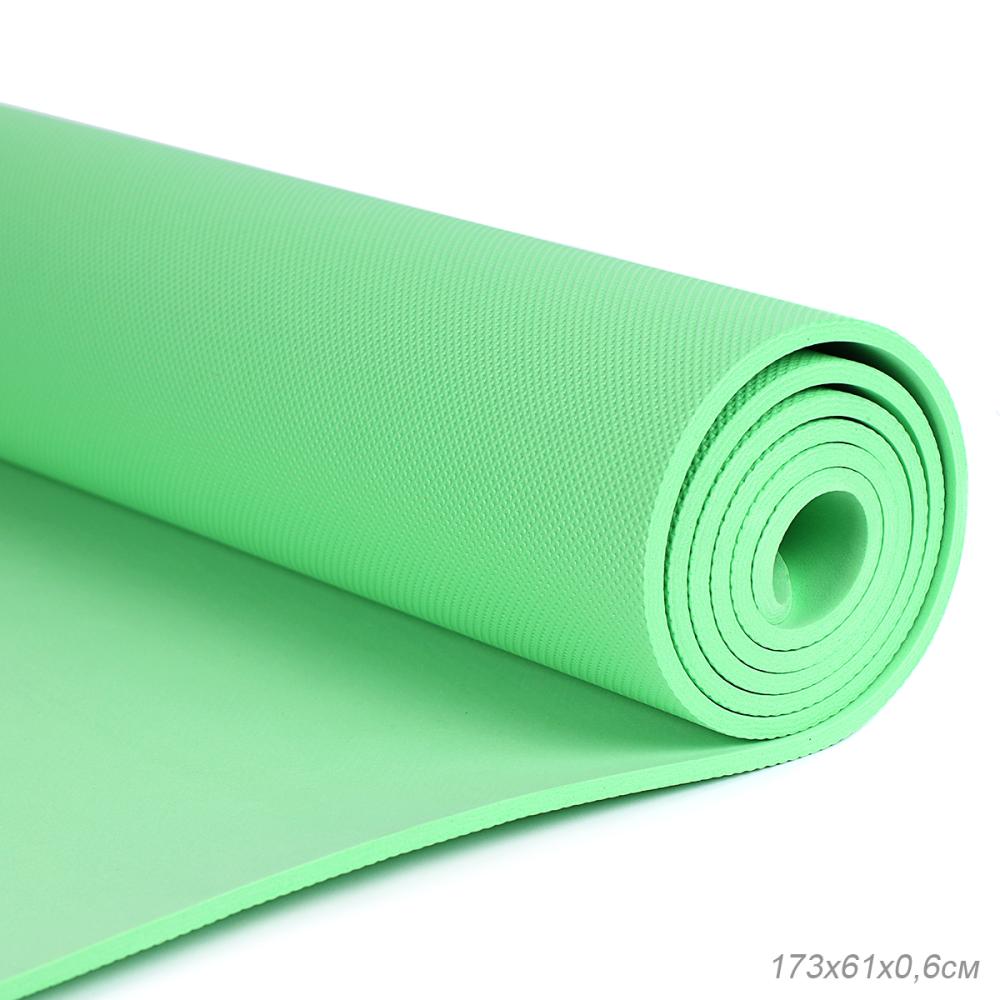Коврик для йоги и фитнеса спортивный гимнастический EVA 6мм. 173х61х0,6 цвет: светло-зелёный / YM-EVA-6LG / уп 24