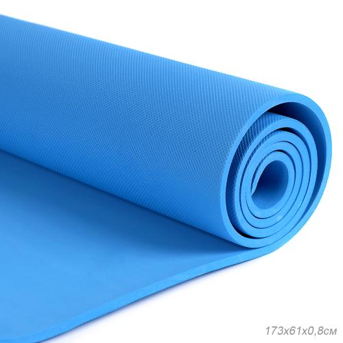 Коврик для йоги и фитнеса спортивный гимнастический EVA 8мм. 173х61х0,8 цвет: голубой / YM-EVA-8B / уп 20