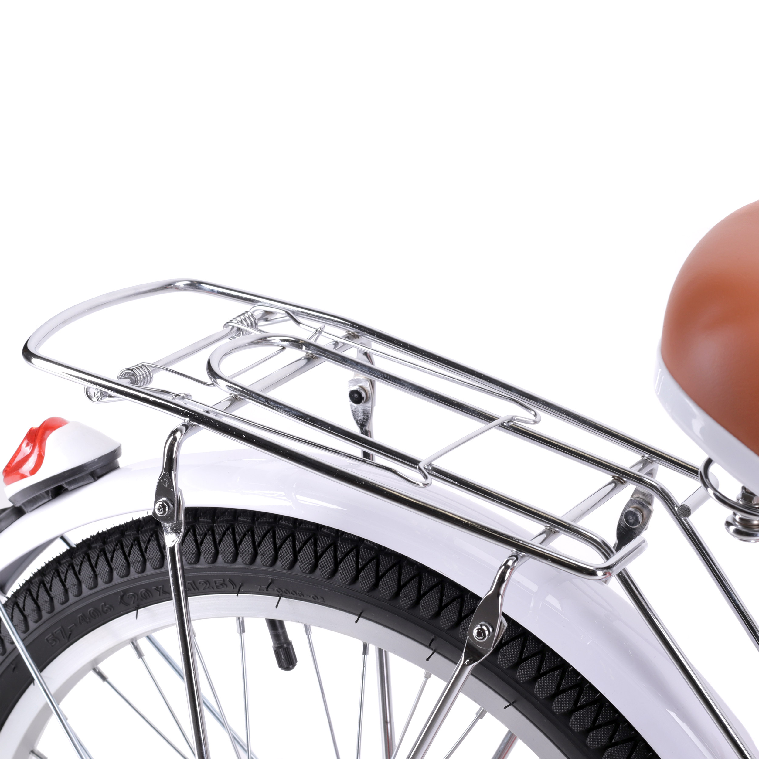 Откройте для себя COMIRON MOONRIVER — велосипед, который сочетает в себе безупречный классический дизайн и практичность. С корзинкой и багажником этот велосипед станет надежным помощником в повседневных делах и увлекательных приключениях!