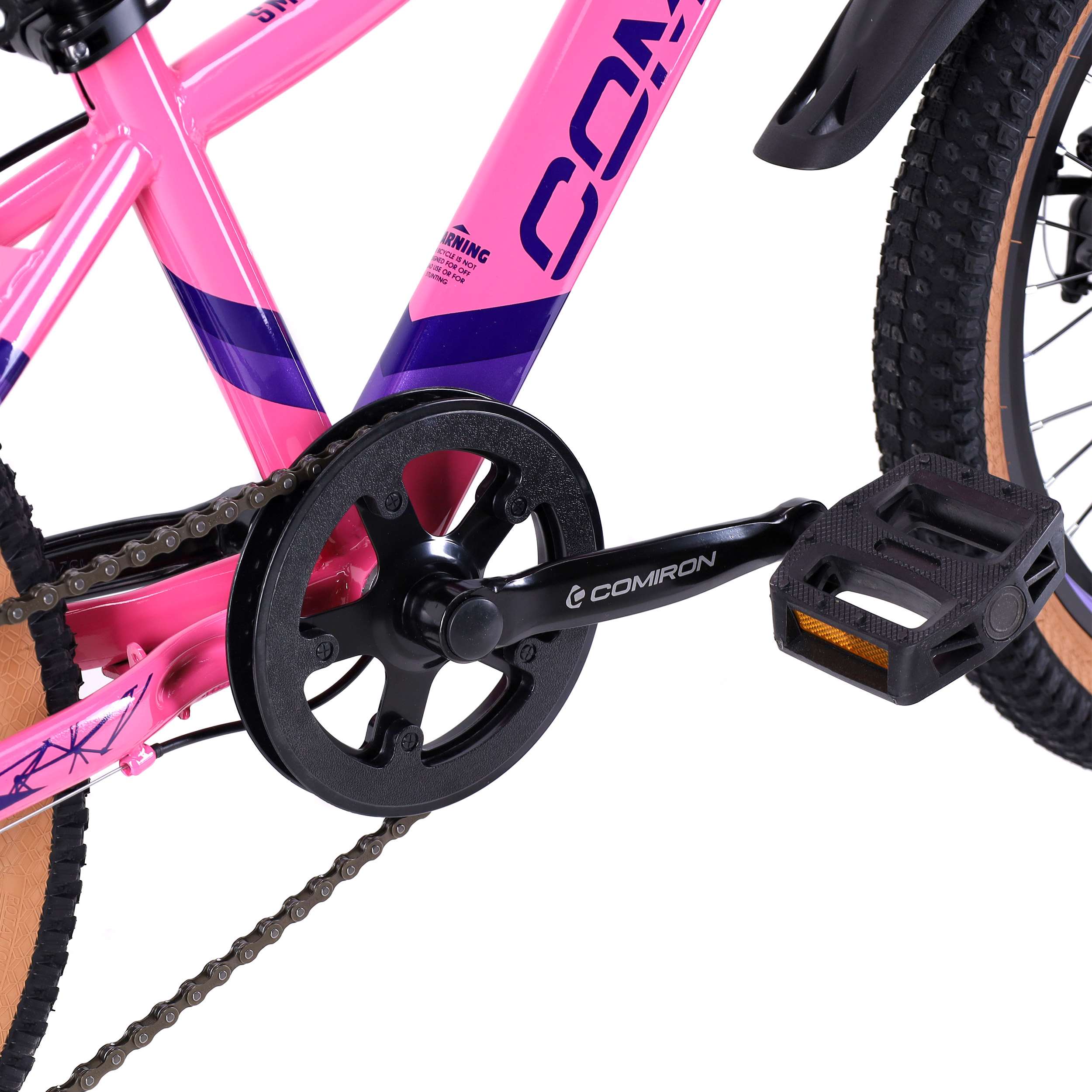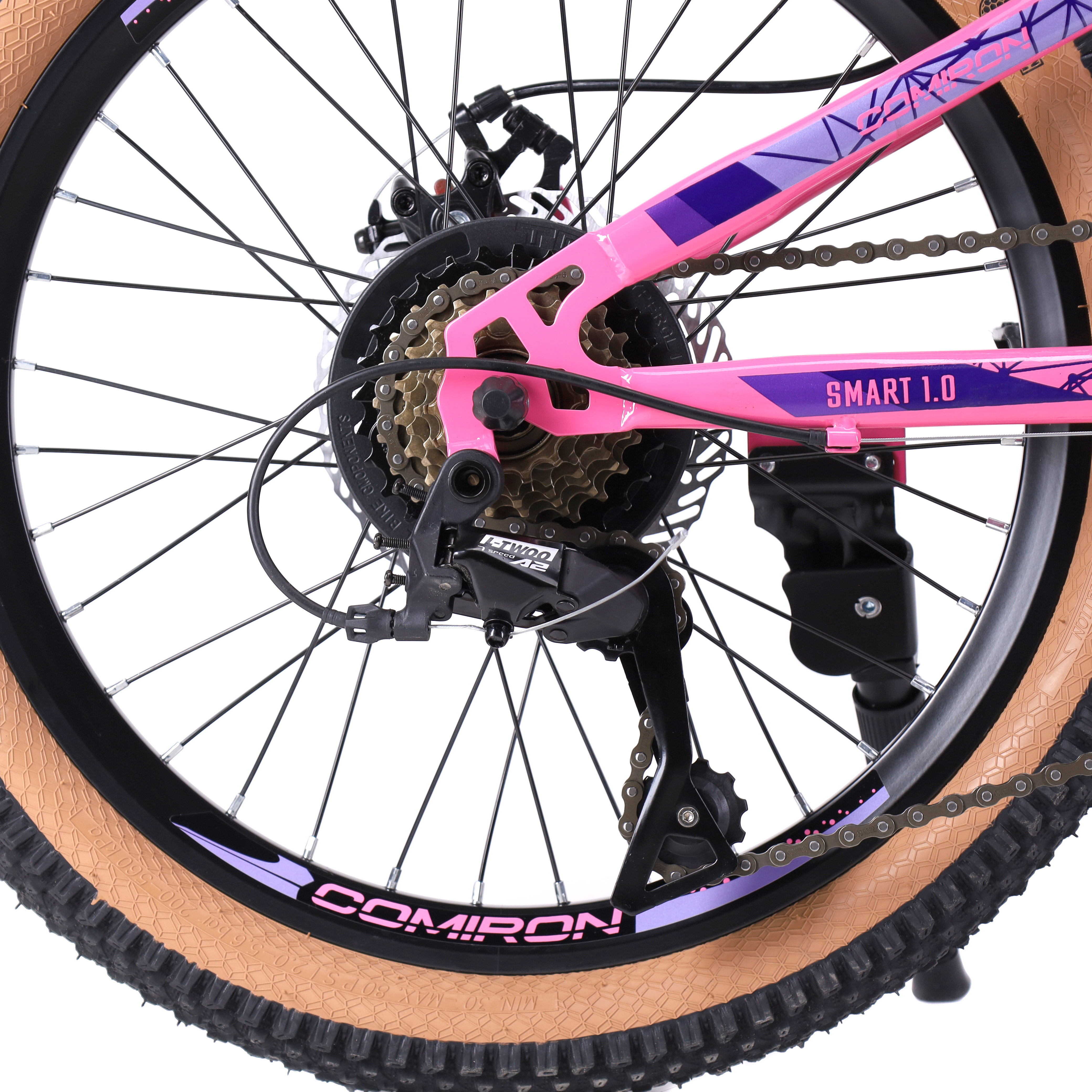 Велосипед COMIRON SMART 20”– комфортный детский велосипед с заниженной рамой, 7-скоростной трансмиссией, дисковыми тормозами, амортизационной вилкой, внутренней проводкой тросов, крыльями и подножкой в комплекте.