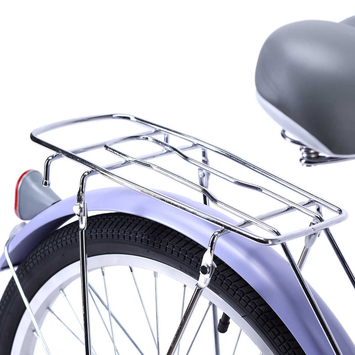 Велосипед доступен в трех нежных оттенках: нежно-розовом, лунной зелени и лавандовом. Высококачественное лакокрасочное матированное покрытие защищает велосипед от коррозии и сохраняет его яркий внешний вид на долгие годы. Стильные элементы, такие как грипсы, «плетёная» корзинка, задний рефлектор «фонарь» и седло, придают велосипеду элегантный и современный вид. Белые педали-платформы, полноразмерные крылья в цвет рамы и хромированные элементы завершают образ этого стильного городского велосипеда.