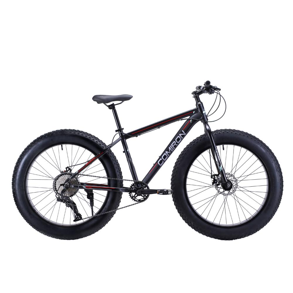 Велосипед фэт-байк 26"x4" рама 17" COMIRON CHUBBY, 1*10sp L-TWOO, 34T, CASSETE 11-42T, HARD FORK, чёрный неоновый mercedes