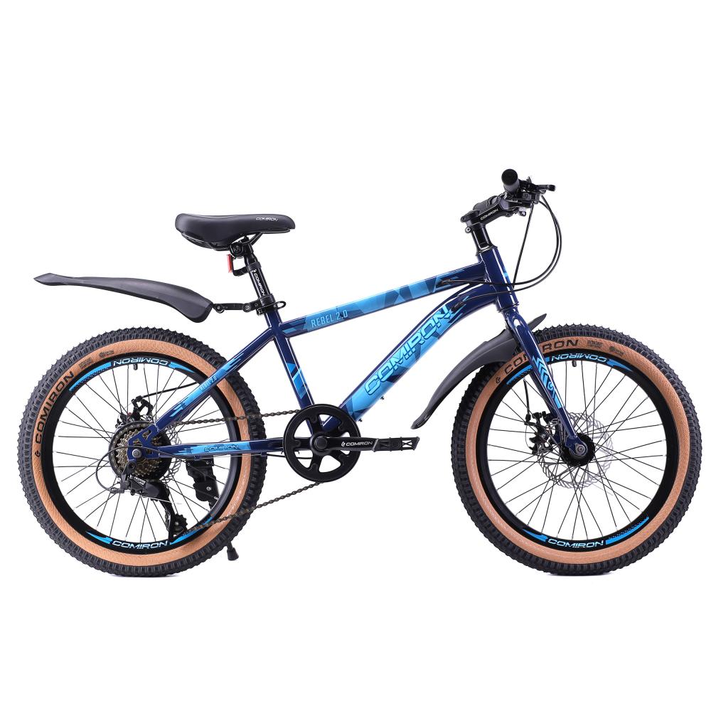 Велосипед 20" рама 12" 7sp COMIRON REBEL ригид – детский горный велосипед на стальной раме с 7-скоростной трансмиссией, дисковыми тормозами, легкой жёсткой вилкой и «супергеройским» дизайном.