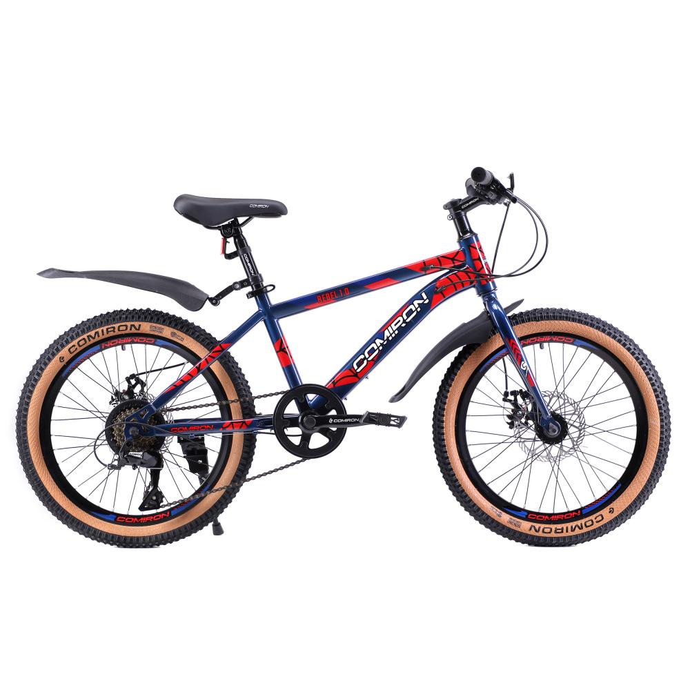 Велосипед 20" рама 12" 7sp COMIRON REBEL ригид – детский горный велосипед на стальной раме с 7-скоростной трансмиссией, дисковыми тормозами, легкой жёсткой вилкой и «супергеройским» дизайном.