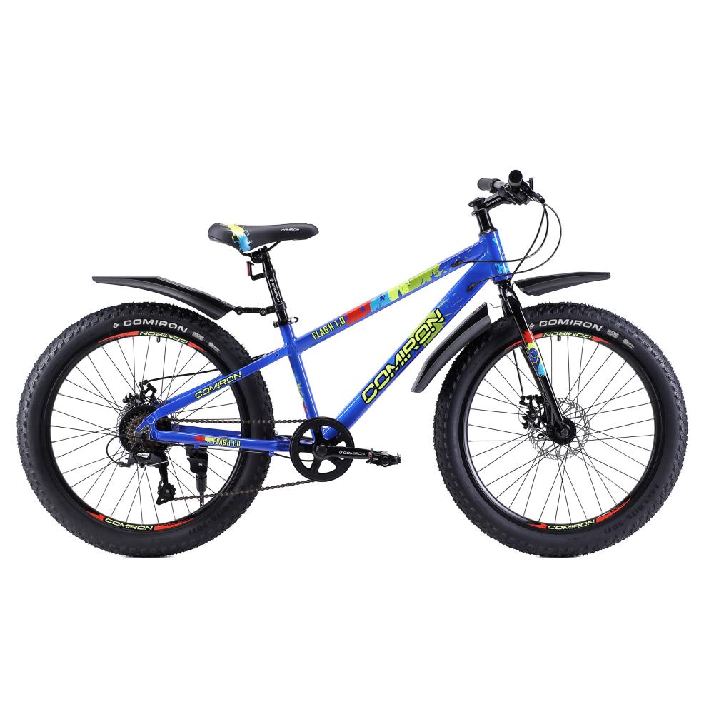 COMIRON FLASH 24" – горный велосипед для подростков на алюминиевой раме с широкими покрышками (полу-фэт), 7-скоростной трансмиссией и дисковыми тормозами.