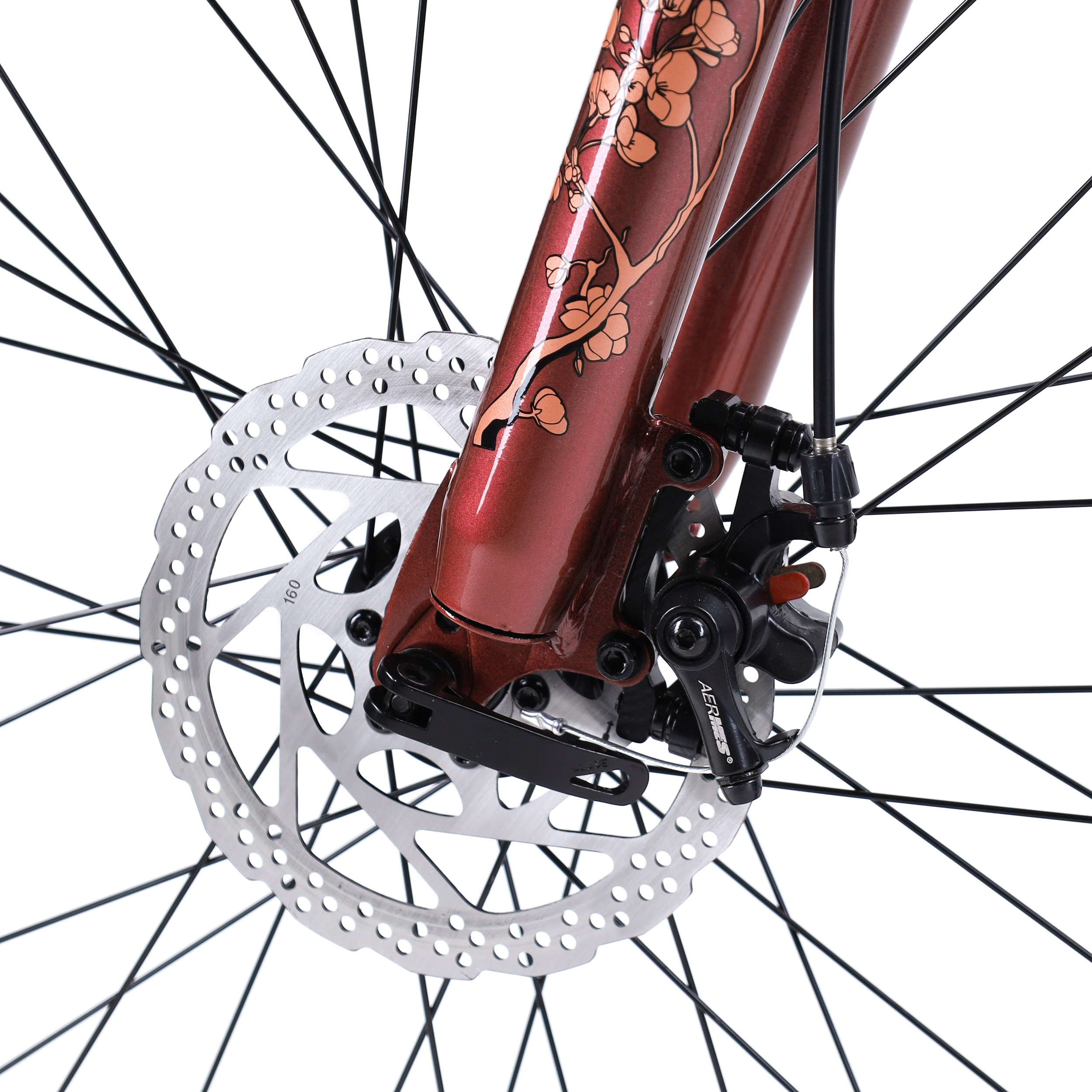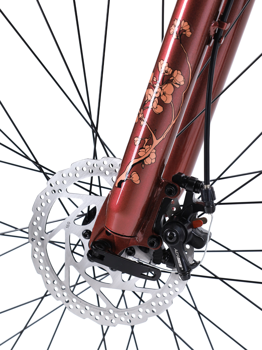 - Эстетика и вдохновение: Дизайн велосипеда украшен мотивами распускающихся цветов сакуры, символизирующими женственность и красоту.