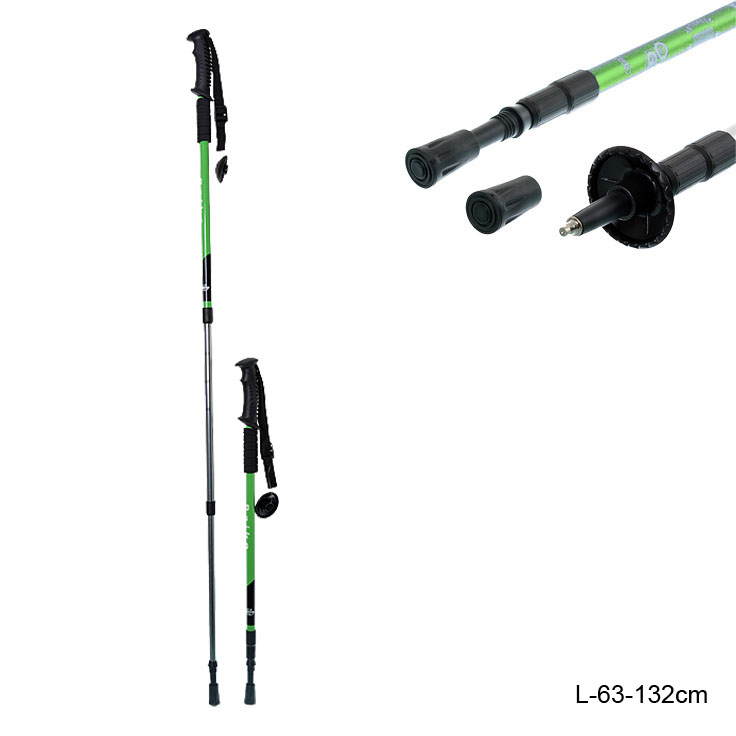 Телескопическа стойка палки изготовлена из специальных легких, но ультрапрочных материалов. Стойка палки - трехсекционная, в нижних двух секциях расположена метрическая разметка для быстрой и точной регулировки длины под рост. Удобную систему фиксации обеспечивает плавная регулировка высоты Винтовым (цанговым) зажимом. Фиксирует секции поворотом трубок вдоль оси в противоположных направлениях относительно друг друга.. Рукоять выполнена из каучука, обеспечивает комфортный и точный хват; эргономичный темляк регулируется. Он надевается на запястье и обеспечивает дополнительную безопасность пользователю при использовании палок. Палки оснащены системой быстрого отсоединения наконечника, Наконечники изготавливаются из износоустойчивых твердосплавных материалов, чаще всего из карбида вольфрама (их еще называют победитовыми наконечниками). При ходьбе по рыхлому грунту пользователь может установить дополнительное опорное кольцо сверху наконечника.