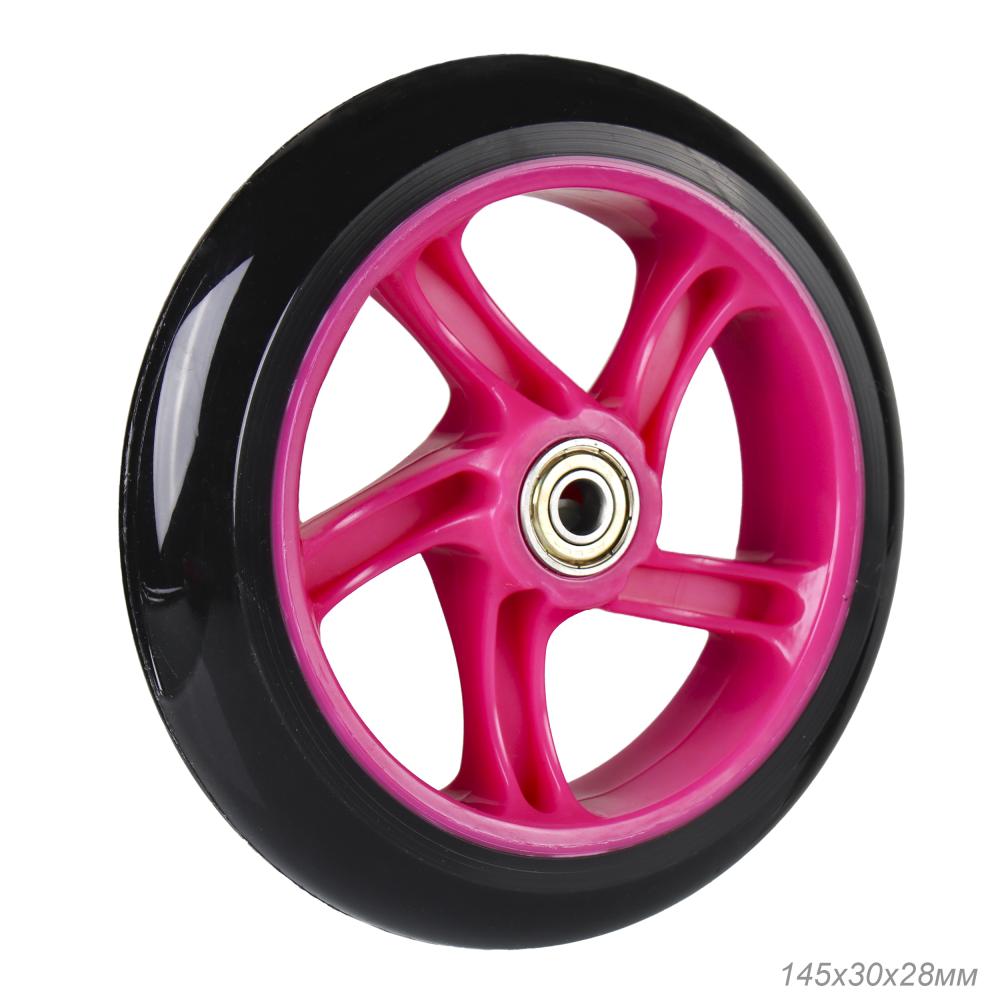 Колесо PU для самоката, обод пластиковый 145/30/28 мм с 2 подшипниками ABEC-7 /уп 60/ черное-розовое