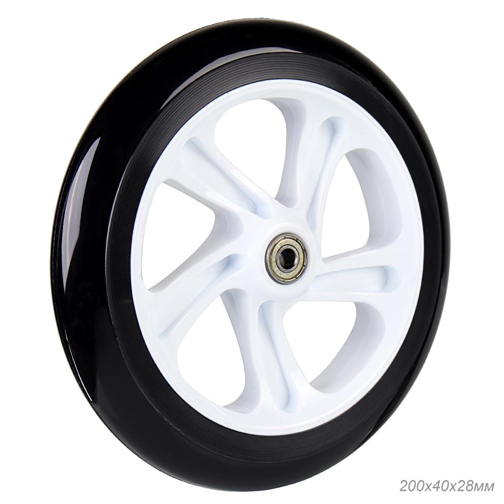 Колесо PU для самоката, обод пластиковый 200/40/28 мм с 2 подшипниками ABEC-7 /уп 30/ черное-белое