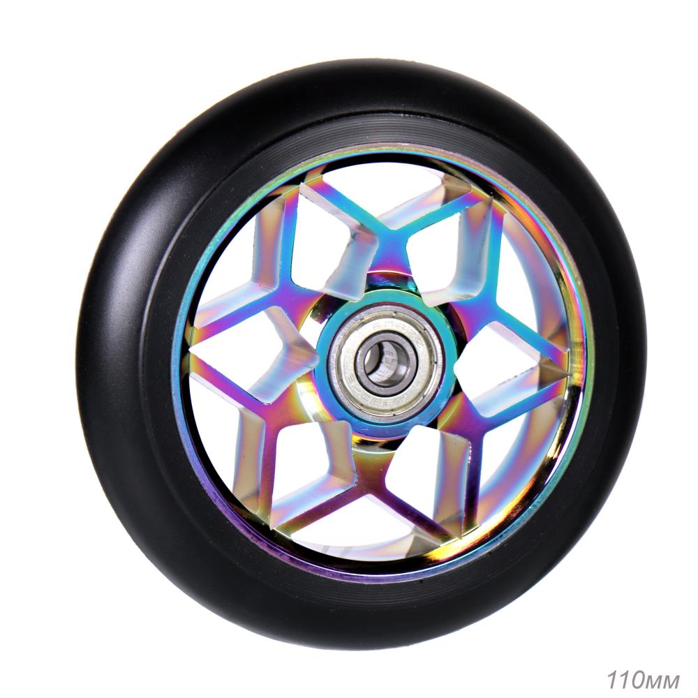 Колесо PU для трюкового самоката, обод алюминевый 110 мм с подшипниками ABEC-9 /JJ-022-110/уп 120/ перламутровая звезда