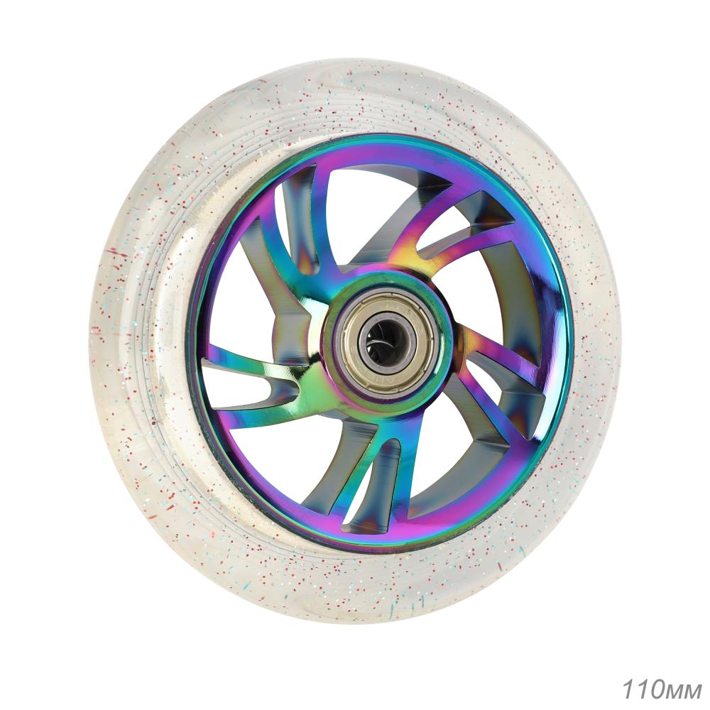 Колесо PU для трюкового самоката, обод алюминевый 110 мм с подшипниками ABEC-9. / уп 100 / прозрачный с перламутром