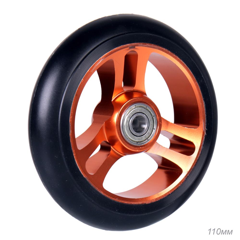Колесо PU JJ-020 для трюкового самоката, обод алюминевый 110 мм с подшипниками ABEC-9 /уп 120/ золотая лопасть