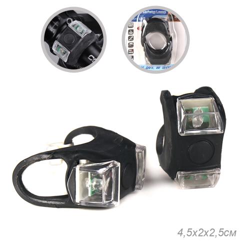 Фонарь двойной LED2 в силиконовом корпусе на руль велосипеда скутера на шлем питание от батареек чёрный набор из 2 штук /689378/