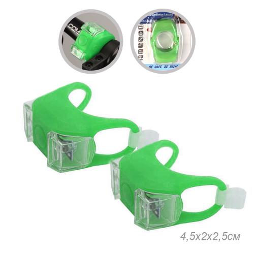 Фонарь двойной LED2 в силиконовом корпусе на руль велосипеда скутера на шлем питание от батареек зелёный набор из 2 штук в блистере /689381/