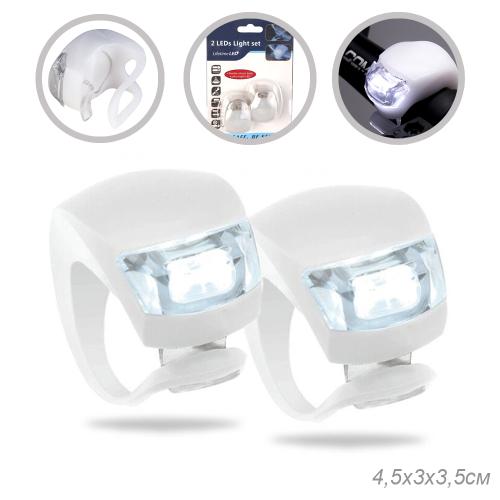 Фонарь LED в силиконовом корпусе на руль велосипеда скутера на шлем питание от батареек белый набор из 2 штук в блистере /уп 2/120/300/