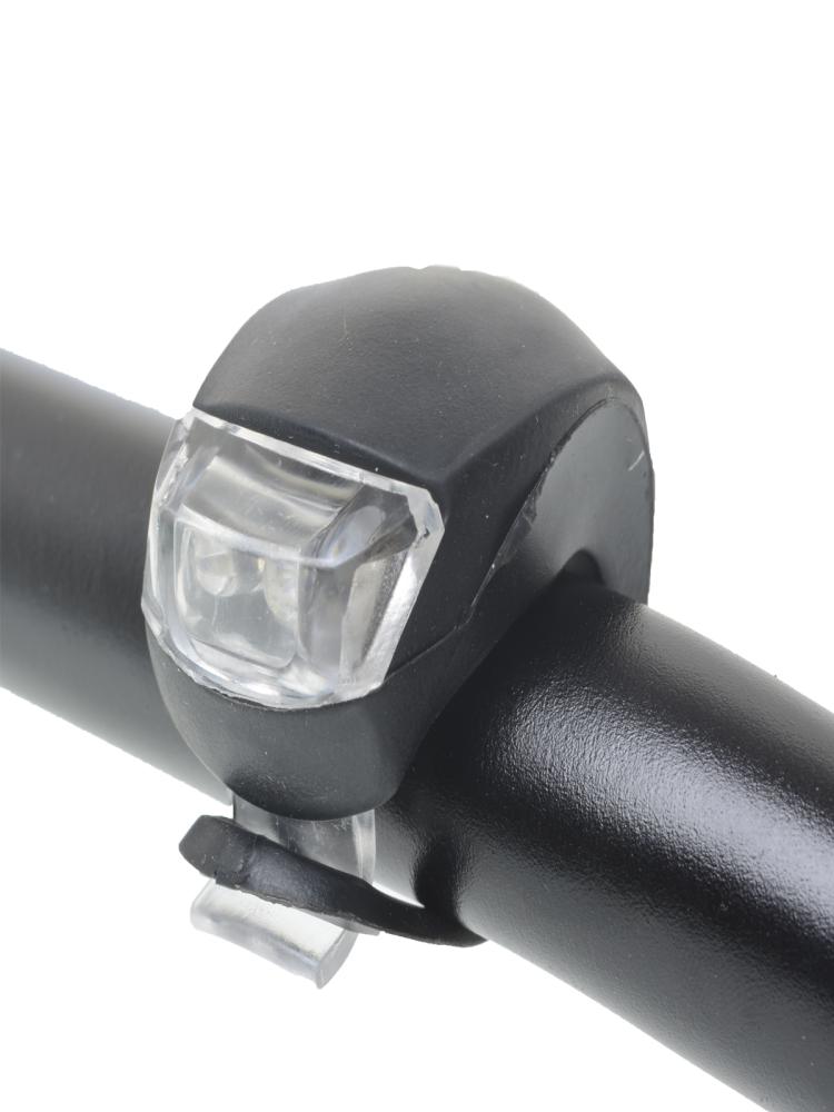 Фонарь LED в силиконовом корпусе на руль велосипеда скутера на шлем питание от батареек черный /уп 200/