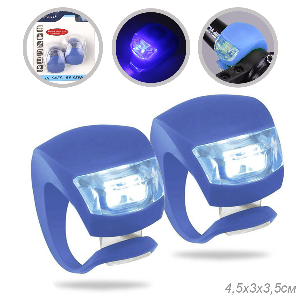 Фонарь LED в силиконовом корпусе на руль велосипеда скутера на шлем питание от батареек синий набор из 2 штук в блистере /689374/