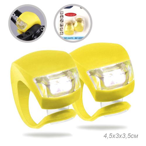 Фонарь LED в силиконовом корпусе на руль велосипеда скутера на шлем питание от батареек желтый набор из 2 штук в блистере /689376/