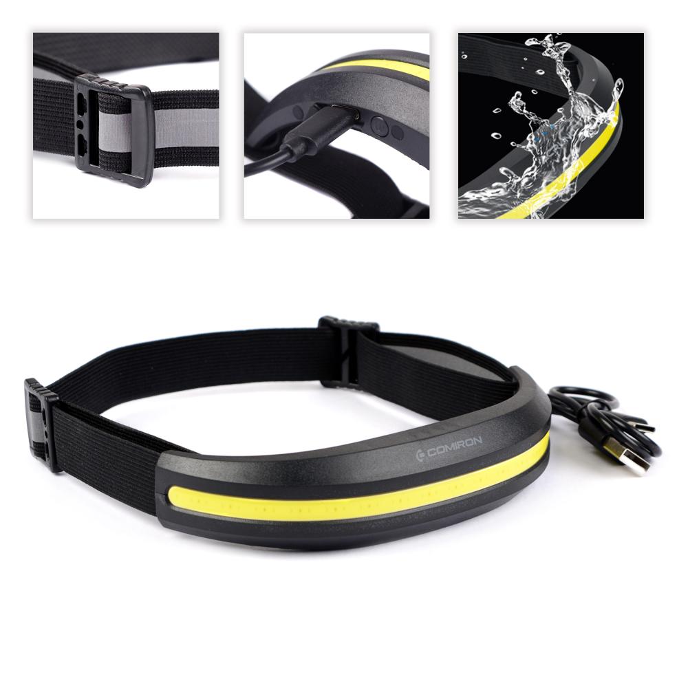 Фонарь налобный спортивный COMIRON O'HEAD ONE корпус: жёсткий ABS, IPX5; свет: COB, 400lm; аккум: 1200 mAh, USB Type-C; индикатор, КРАСНЫЙ /уп 100/