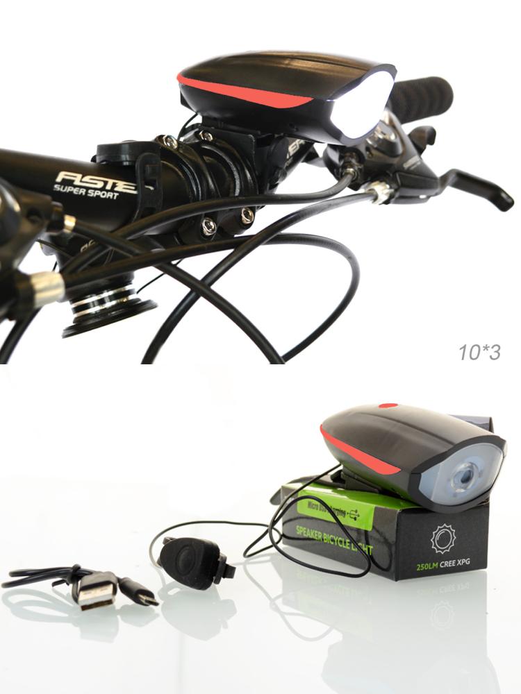 Фонарь велосипедный LED 120Lm перезаряжаемый от USB красный /уп 40/