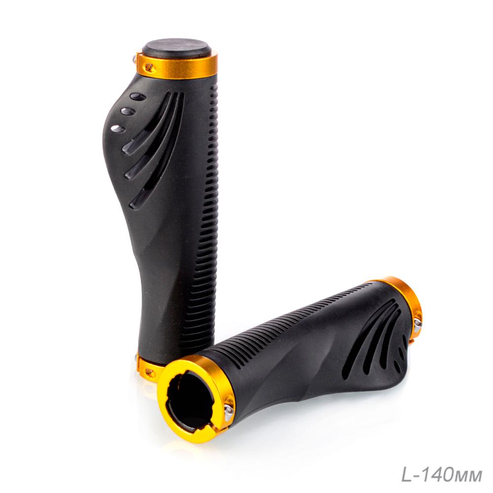 Грипсы 140 мм. Эргономичные. COMIRON с алюминевыми струбцинами / 2шт / Цвет черный-золотой /FD-A333-Black-Gold/уп 100