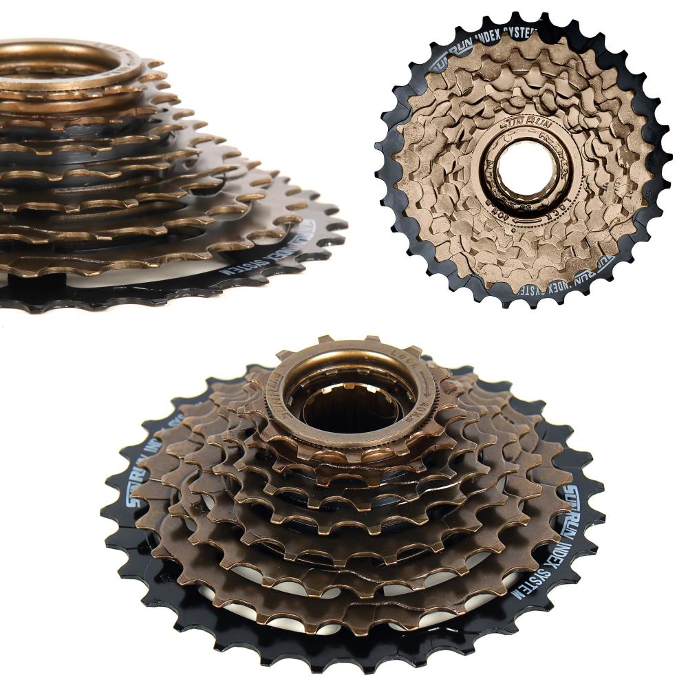 Трещетка SUNRUN FW-8I индексная имеет 8 передач (звезд). Цвет: коричневая/32T ED чёрный.