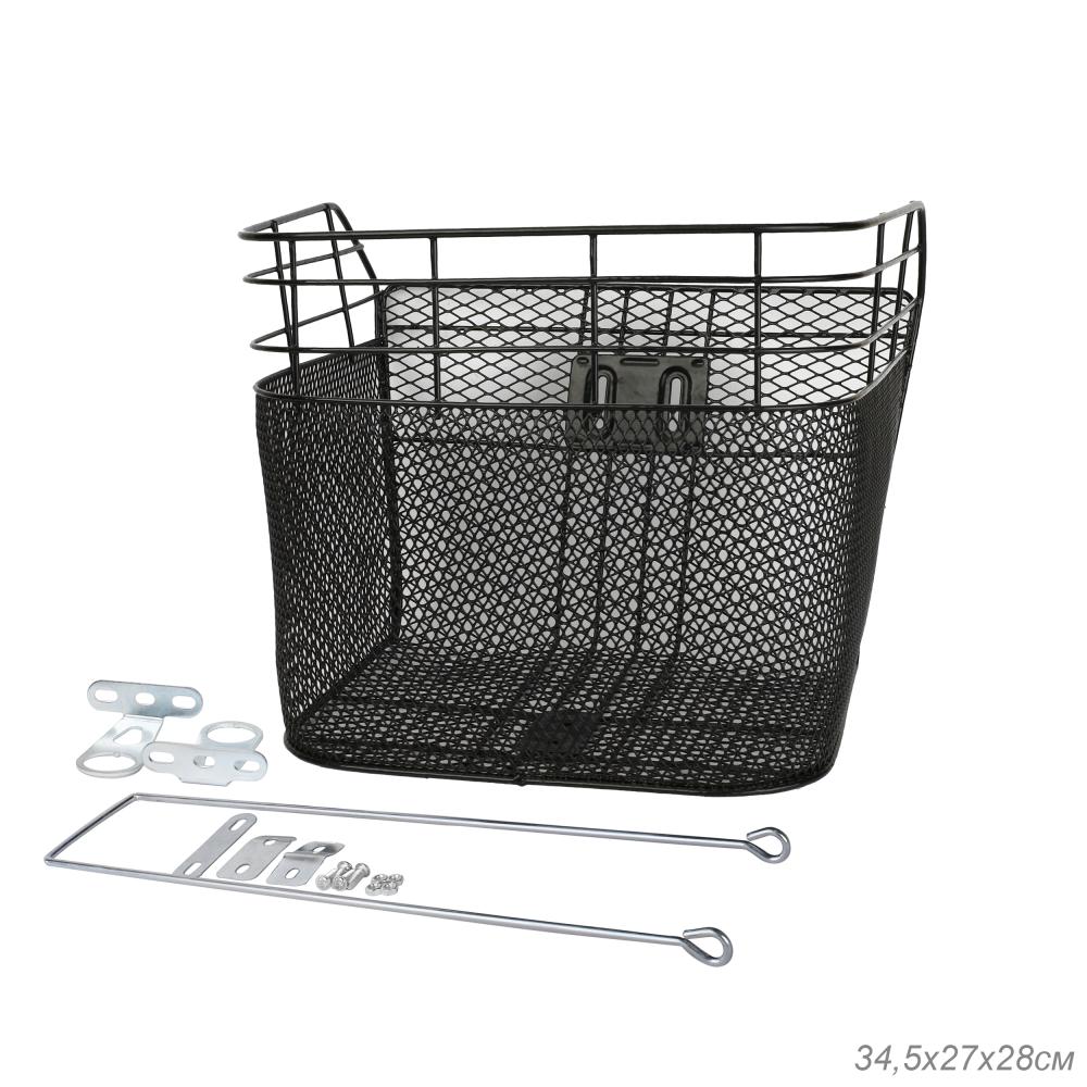 Корзина для велосипеда металлическая, с креплением на переднее колесо. 2 кронштейна на рулевую колонку. Черная. / 1DVMI-15 / уп 20