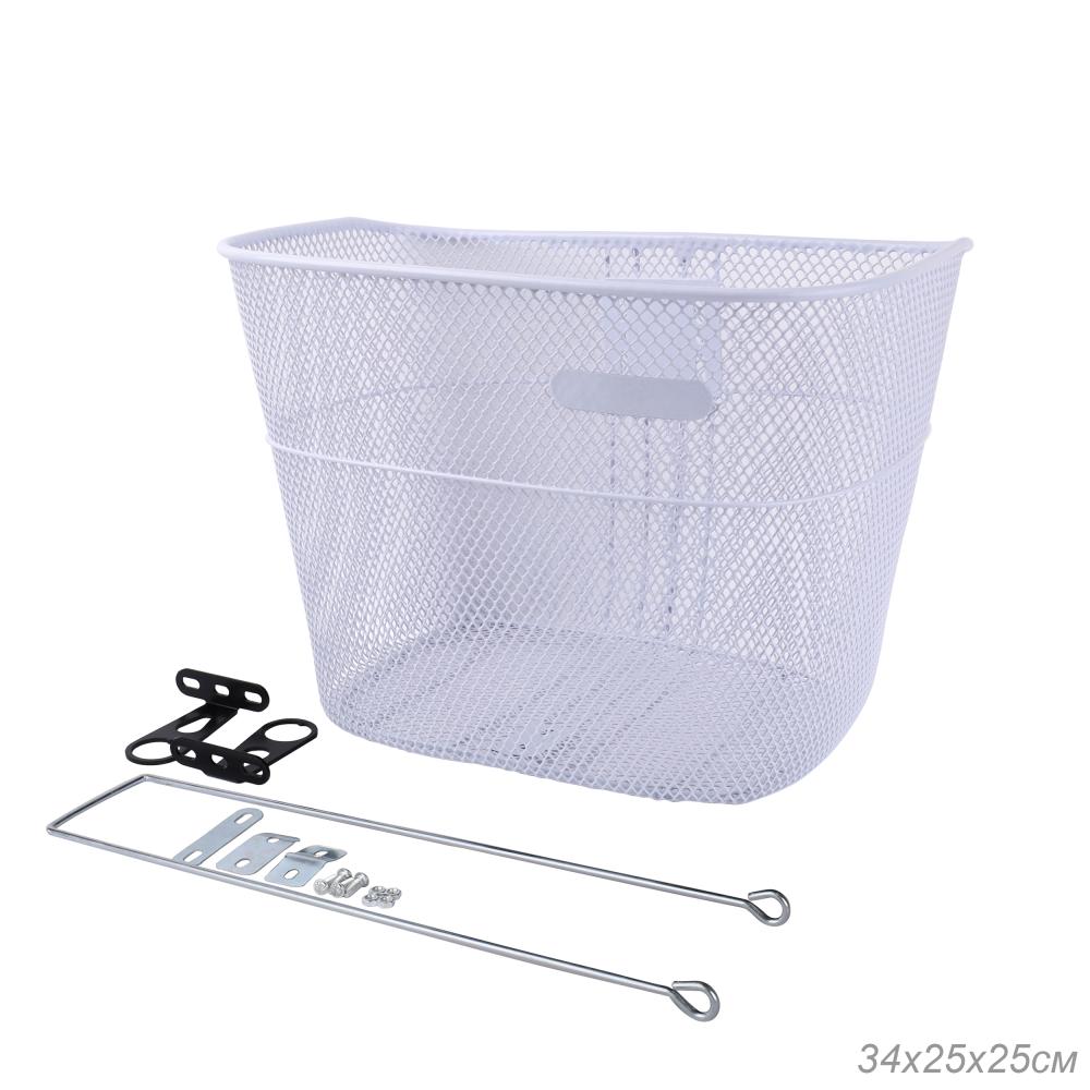 Корзина для велосипеда металлическая, с креплением на переднее колесо под резьбовую вилку. 2 вида кронштейнов на рулевую колонку Белая/1DVMI-2 /уп 40/