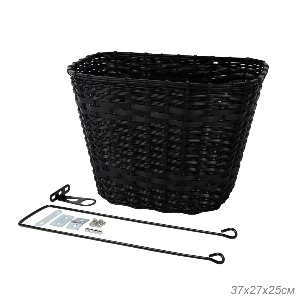 Корзина для велосипеда пластик/ плетеная черная с креплением на переднее колесо под резьбовую вилку 2 кронштейна на рулевую колонку / QY-CRCL-07/уп 30