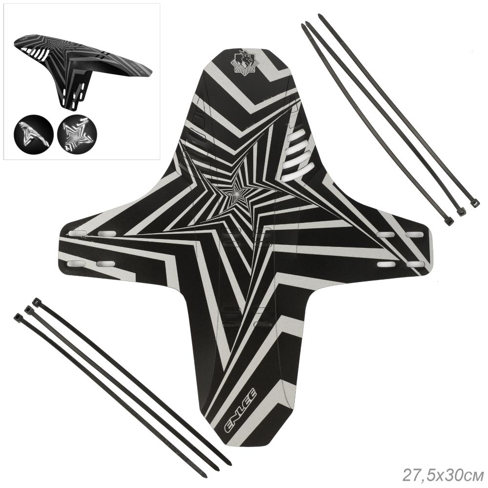 Крыло велосипеда универсальное MTB COMIRON переднее/заднее, светоотражающее, брызговик на вилку. 27.5*30см. Reflective star /уп250/