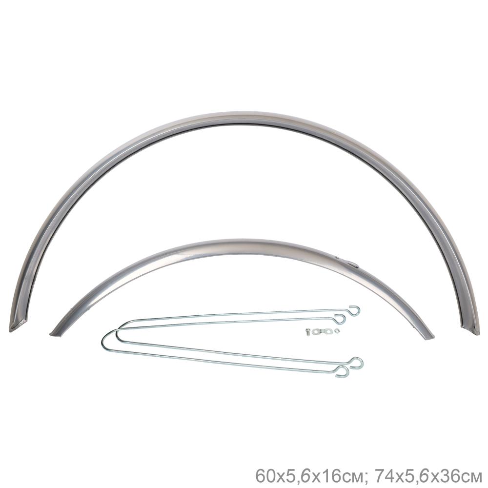 Крылья для велосипеда с колёсами на 28" полноразмерные, Ширина: 56мм, Нерж. Сталь, комплект 2 шт, Цвет: серебро /уп 25 /