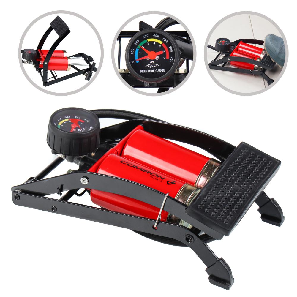 Насос ножной с манометром COMIRON FUJIN 2, стальной корпус, два поршня 55*110мм., вес 1,2 кг. /уп 10/