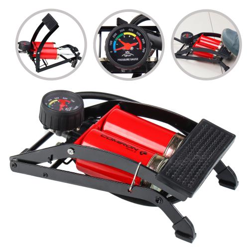 Ножной напольный автомобильный насос. Оснащён манометром для удобного контроля давления.