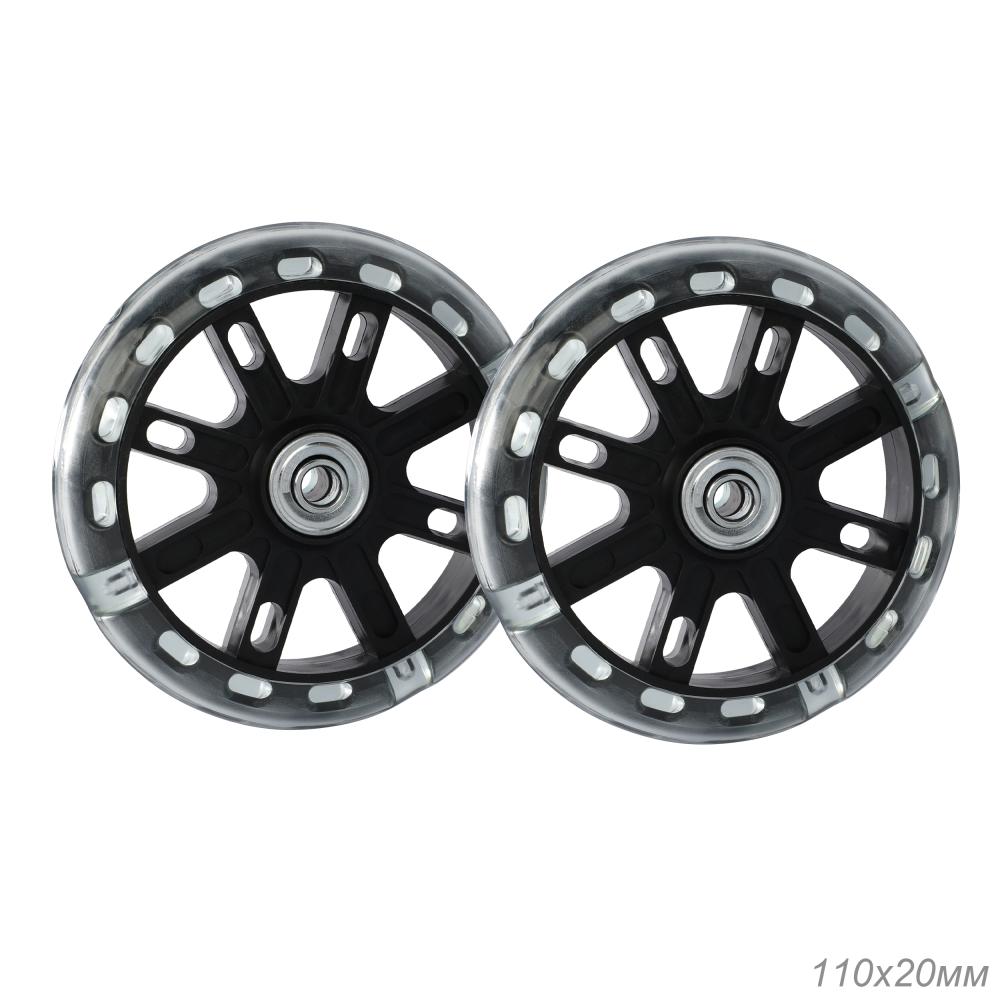 Комплект опорных колес без кронштейна, подшипник, светящиеся колеса Черный 2шт/ HF-042-B / уп 50