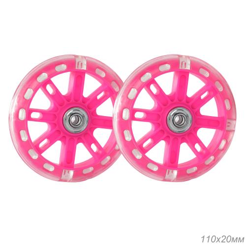 Комплект опорных колес без кронштейна, подшипник, светящиеся колеса Розовый 2шт/ HF-042-PI / уп 50