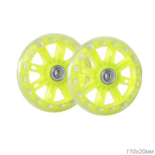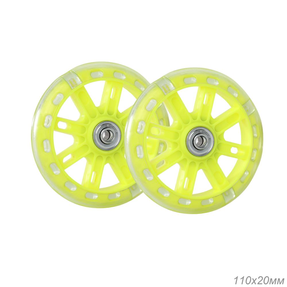 Комплект опорных колес без кронштейна, подшипник, светящиеся колеса Желтый 2шт/ HF-042-YE / уп 50