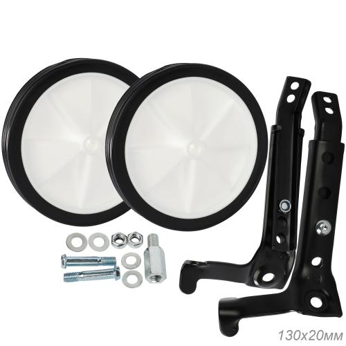 Комплект опорных колес с кронштейнами для двухколесных велосипедов 16"-24" пластиковые колеса Белый 2шт/ HF-014-WH / уп 20