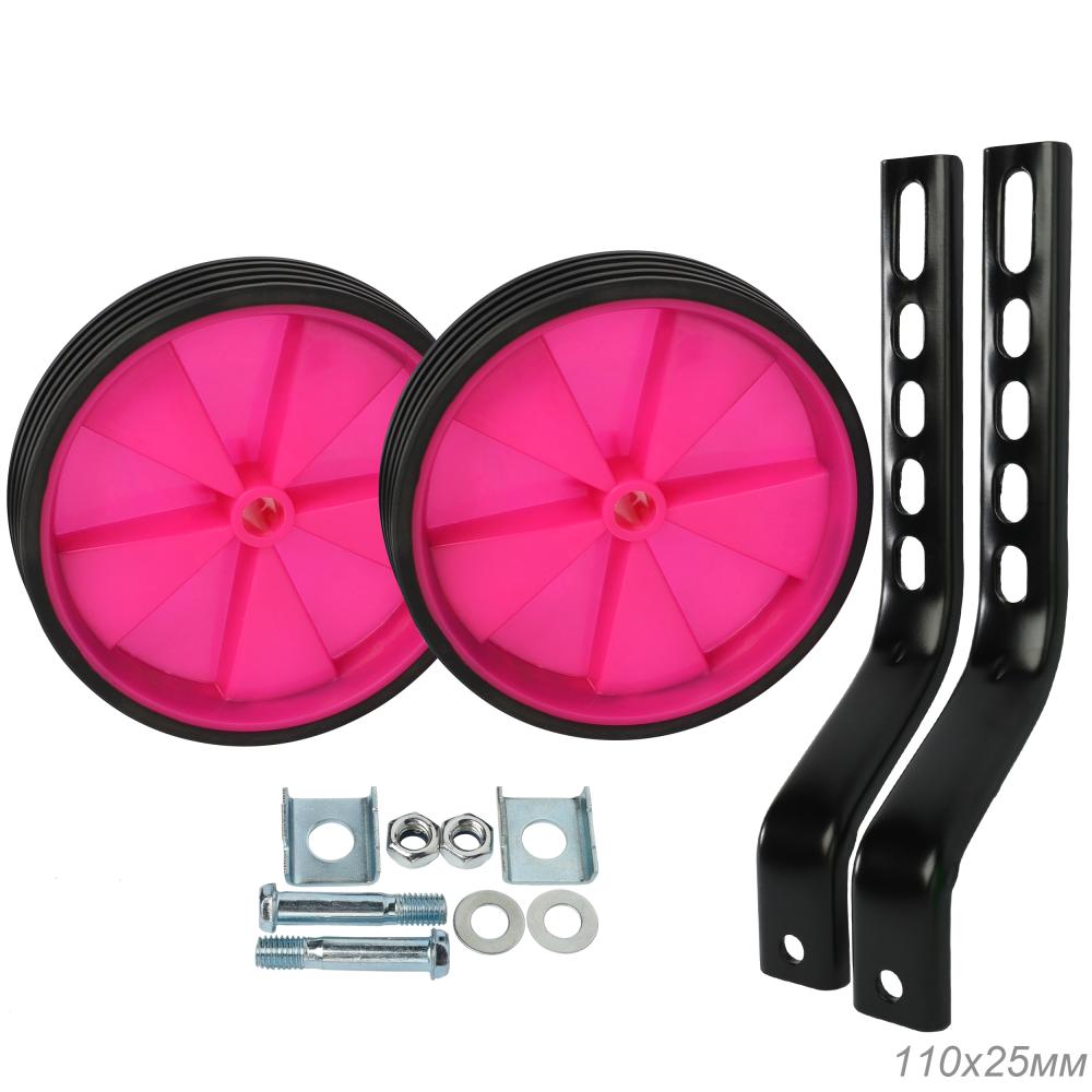 Комплект опорных колес с кронштейнами универсальный 12"-20" пластиковые колеса Розовый 2шт/ HF-032-PI / уп 30