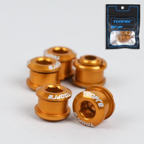Бонки алюминиевые TOOPRE CN-01 12х12х9.6mm болт + гайка 6.5мм высота для крепления передних звёзд к системе шатунов. Набор 5 штук. Золотой