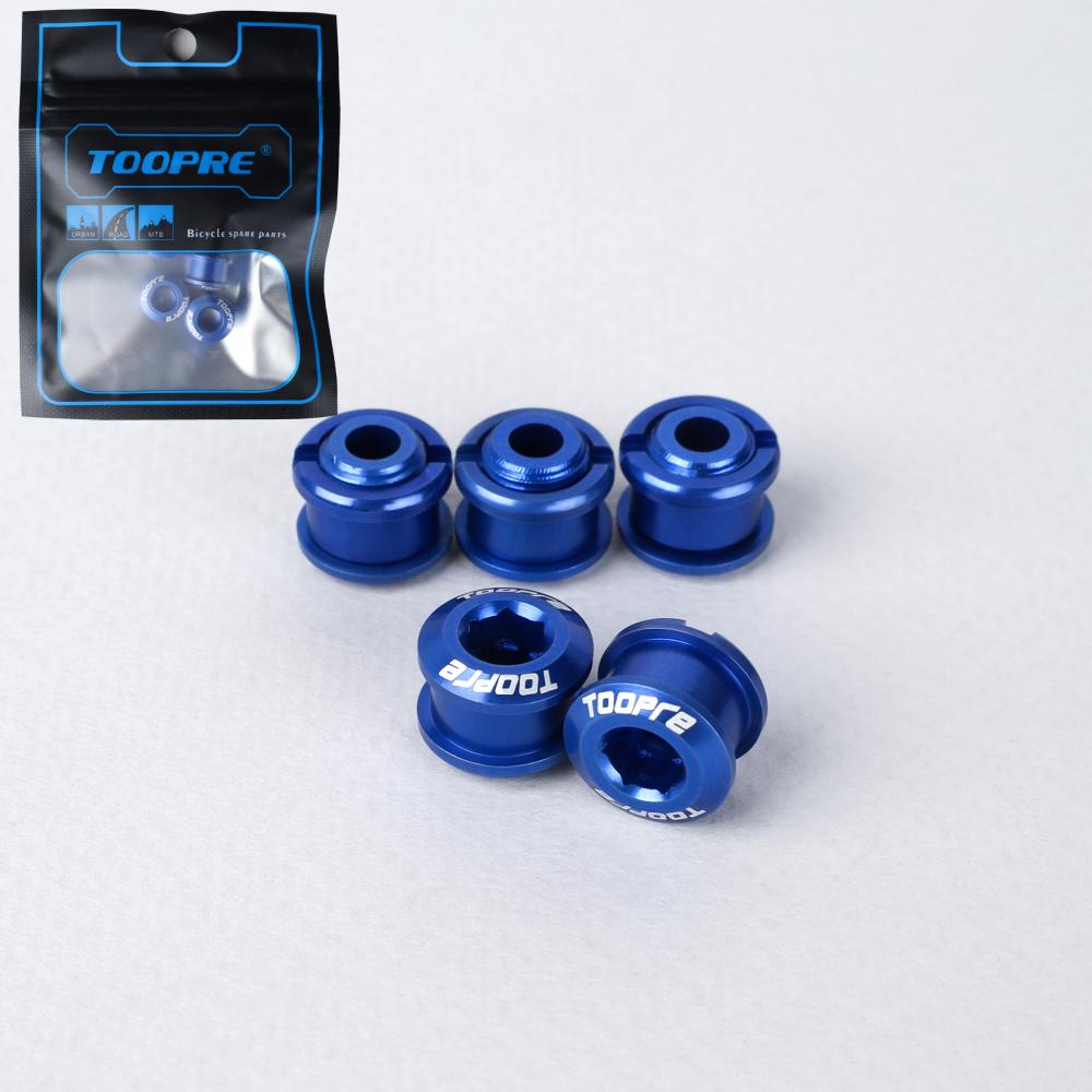 Бонки алюминиевые TOOPRE CN-01 12х12х9.6mm болт + гайка для крепления передних звёзд к системе шатунов. Набор 5 штук. Синий