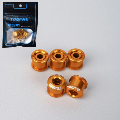 Бонки алюминиевые TOOPRE CN-02 12х12х9.6mm болт + гайка 8.5мм высота для крепления передних звёзд к системе шатунов. Набор 5 штук. Золотой