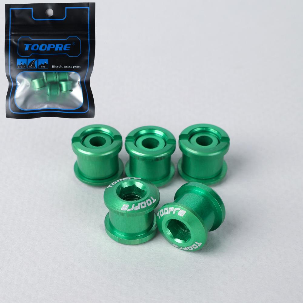Бонки алюминиевые TOOPRE CN-02 12х12х9.6mm болт + гайка 8.5мм высота для крепления передних звёзд к системе шатунов. Набор 5 штук. Зеленый