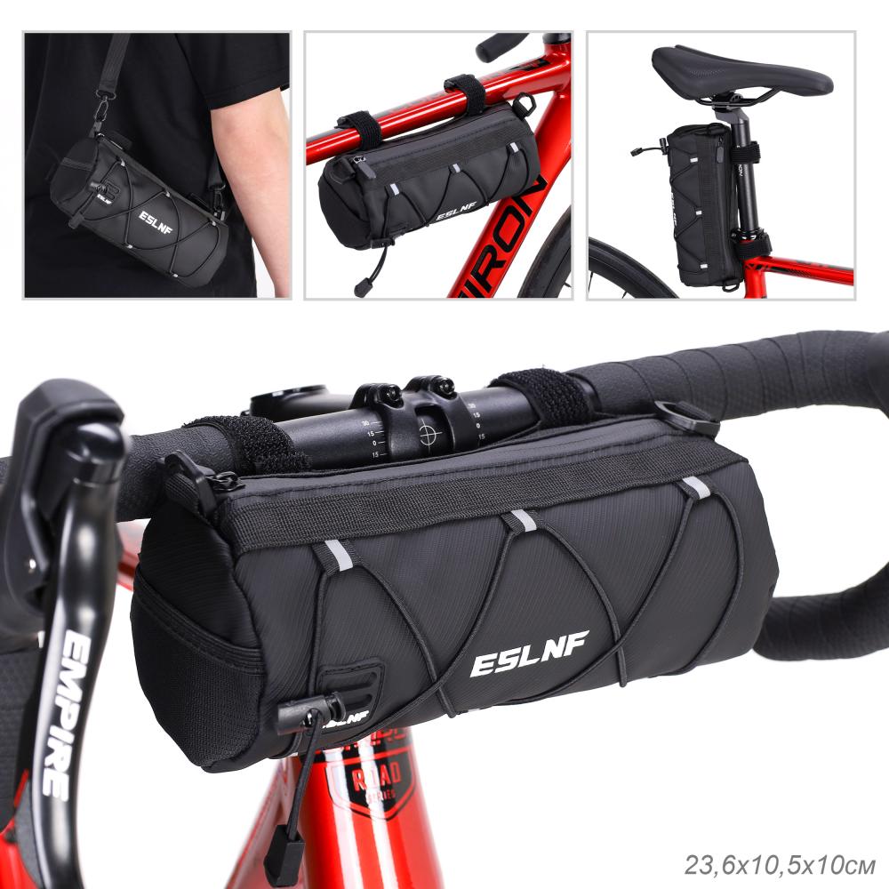 Сумка велосипедная на руль ESLNF корпус на молнии, материал Durable Long-Guard Nylon, крепление velcro, Размер 23.6х10.5х10см, чёрный /уп 60/