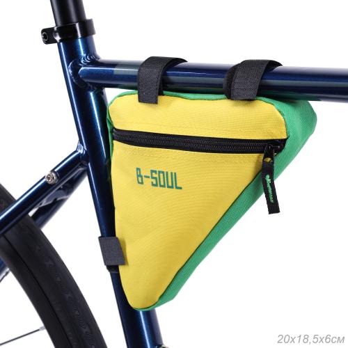 Сумка велосипедная подрамная BICYCLE SOUL, с боковой молнией, крепление velcro, жёлто-зелёная, 20х18,5х4см. /уп 50/