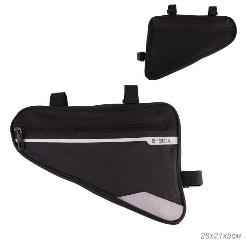 Особенности: треугольная сумка большой вместимости, светоотражающий дизайн, быстросъемная конструкция. Крепление на липучках на переднюю балку велосипеда.