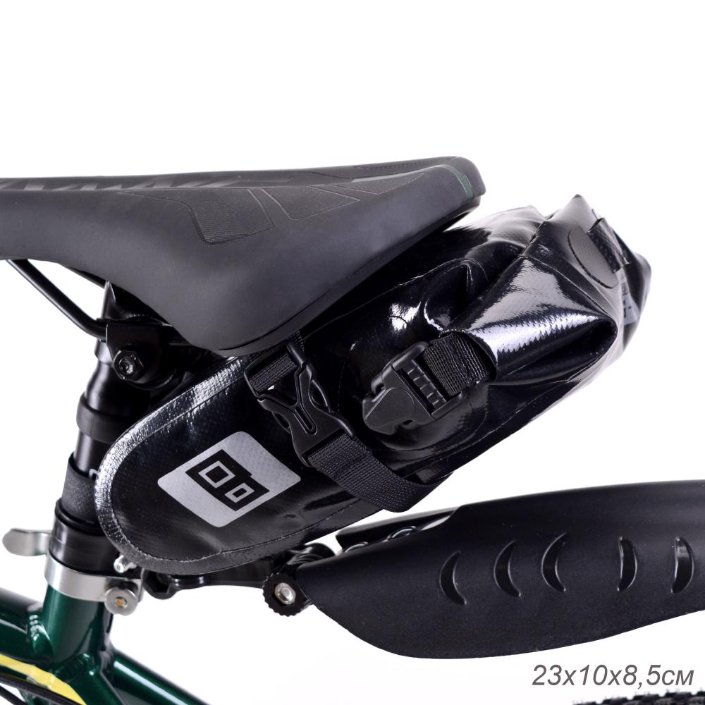 Сумка велосипедная подседельная BICYCLE SOUL, чёрная, водонепроницаемая, полиэстр+TPU, застёжки фастекс, 2 л, 23х10х8.5см. /уп 50