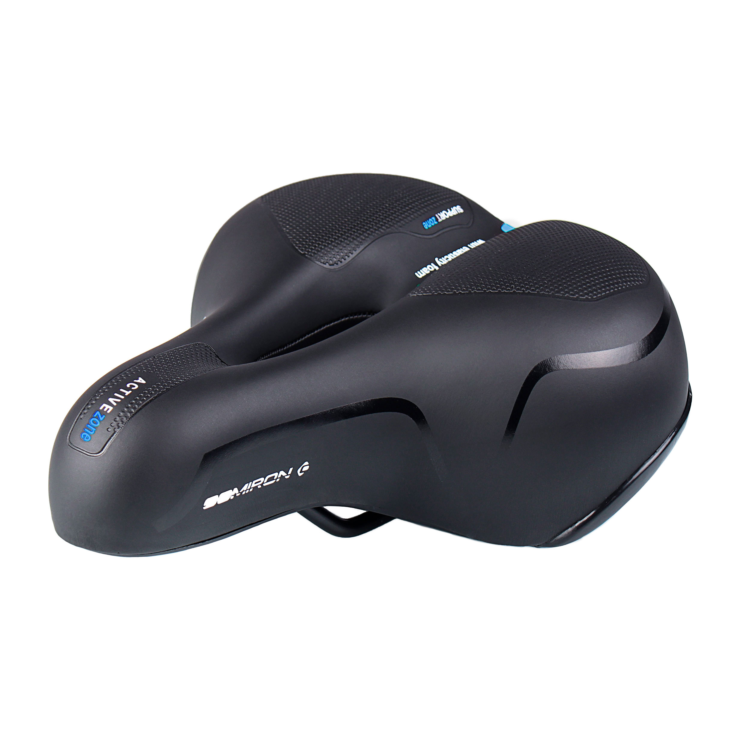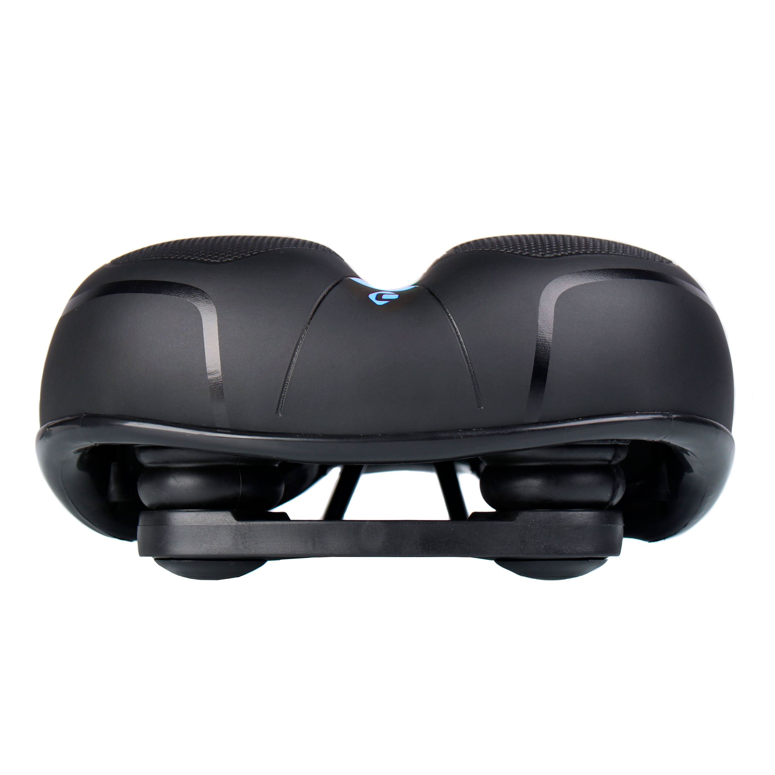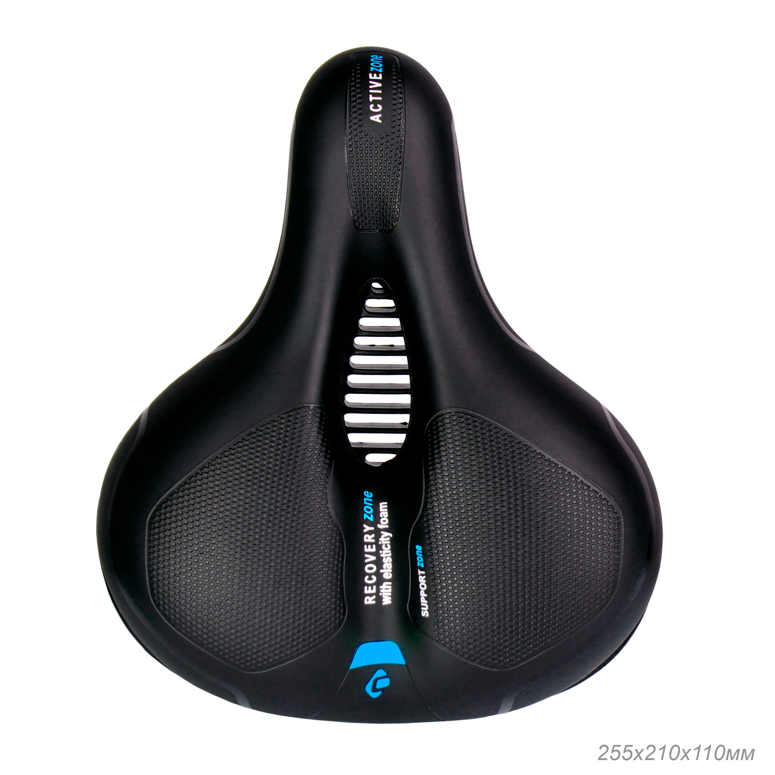 Седло велосипедное комфортное COMIRON BERN N669A 255x210, Технологии: ED, Эластомер, Верх: PU с пресс. принтом, Цвет: Чёрный+Синий/ АКЦИЯ /уп 20/
