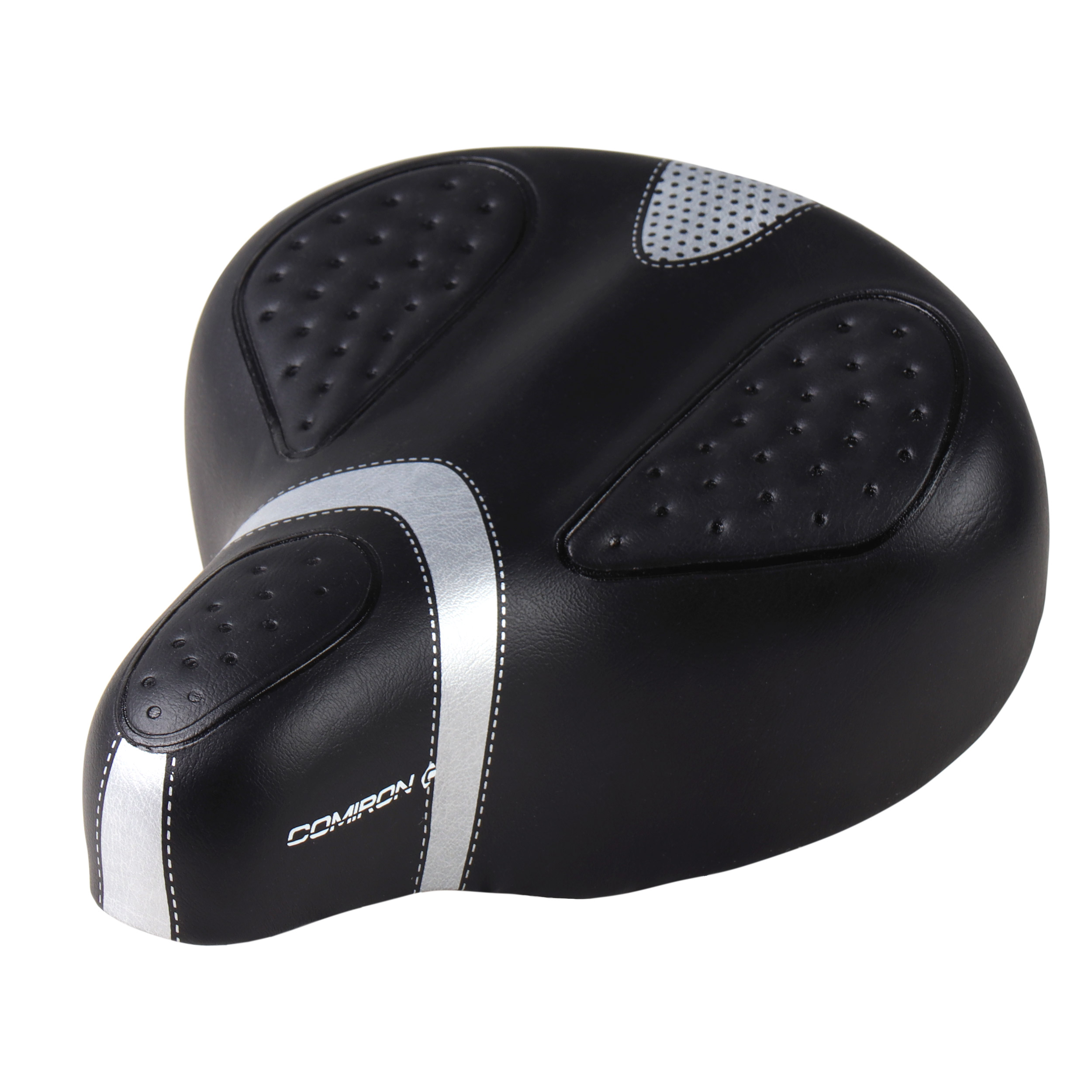 Седло велосипедное суперкомфортное COMIRON KING DIVAN II C095 260x220, Пена 57мм. Технологии: DW, ED, Spring, Верх: PU, Цвет: Чёрный+Серый /уп 16/