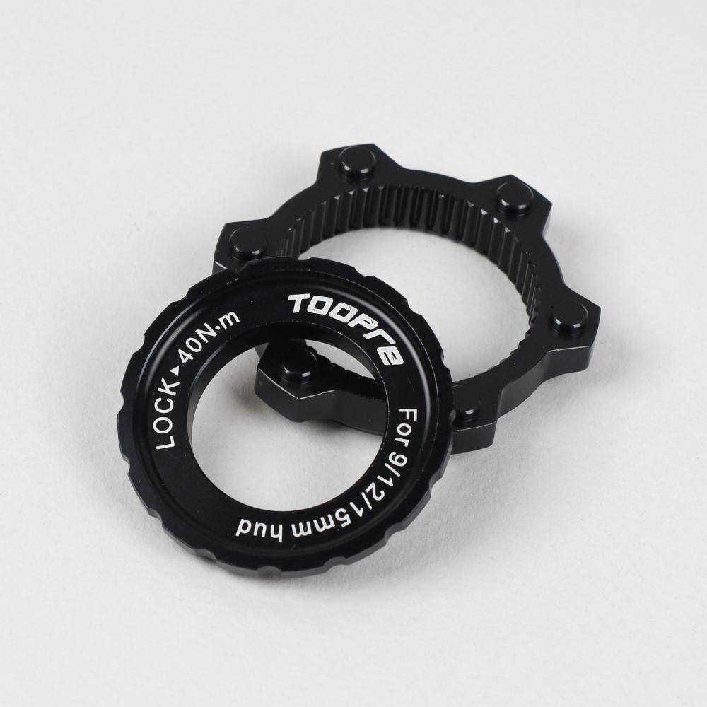 Адаптер тормозного диска (ротора) Six-hole (6 болтов) под крепление втулки Centerlock hub. TOOPRE CLDA-01 Комплект адаптер+ чашка. Черный /уп 20/100/
