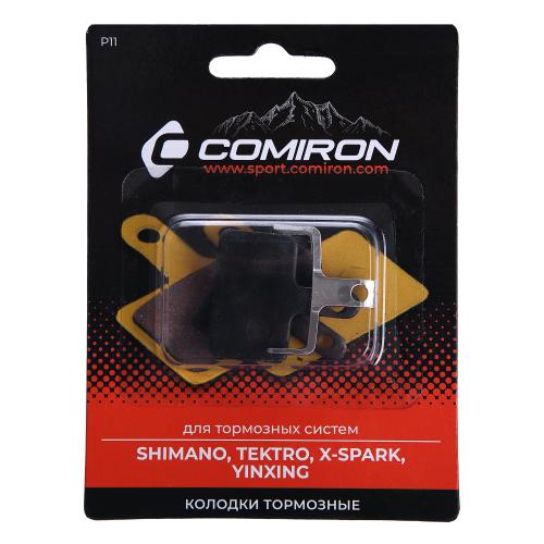 Колодки тормозные органические COMIRON RESIN P11, для тормозных систем: SHIMANO, TEKTRO, X-SPARK, YINXING, с пружиной, блистер 2 шт. /уп 50/200/